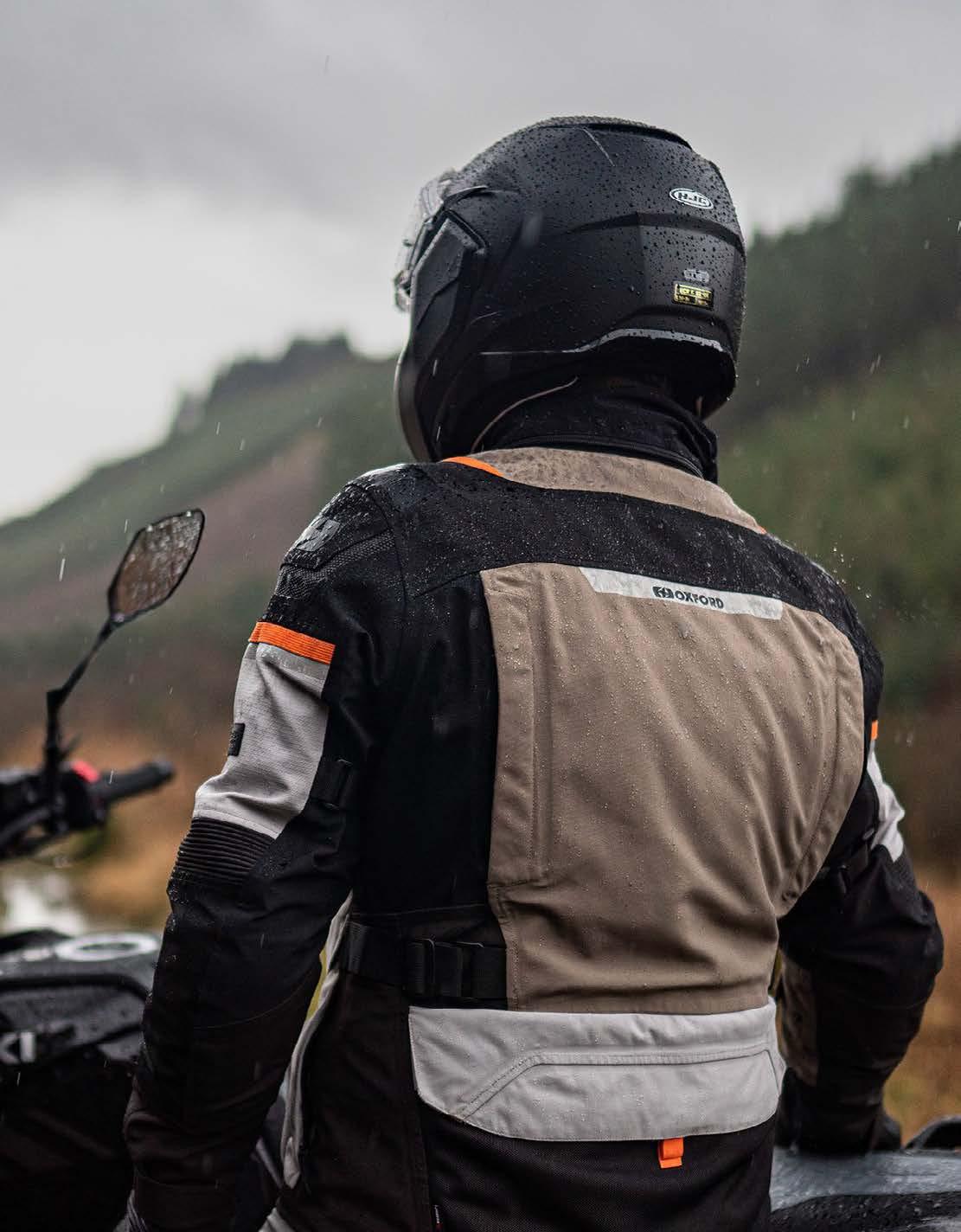 Oxford sin nye toppmodell av kraftige touringjakker i advanced Riderwear serien. Laget kraftig cordura med Oxford sin trelags laminerte Dry2Dry vanntette membran, Trilaminate, laminert til ytterstoffet. Den laminerte konstruksjonen sørger for at jakken tar til seg lite vann, holder seg lett og tørker raskt. Integrerte strekkavlastere i yttermaterialet for best mulig bevegelighet og komfort. Gode justeringsmuligheter og myk neopren i halsen for maks komfort. Jakken har uttakbart Polartec Warmdry Thermo innerfor. Gode ventileringsmuligheter front, bak og på ermene. Godt med reflekser. Lang og kort glidelås for sammenføying med Oxford sine bukser. Avtakbar nakkekrage som holder vær og vind ute. CE beskyttere i skuldre og albuer. Lomme for ryggbeskytter (OB101). Godt med reflekser for ekstra synlighet og RECCO® reflektor sydd inn i jakken. Jakken er CE Godkjent klasse AA.