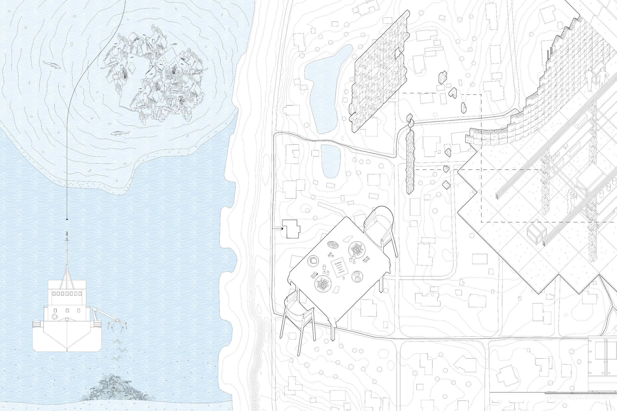 The project proposes an entangled Shellstone economy that could provide economic benefits to local communities by incorporating smallscale, local production—including a local mussel farm, local processing of seashells, and local production of, and construction with, the material. Additionally, there is an opportunity to utilize some of the 16,000 tons of seashell waste generated annually by the food industry in Denmark.