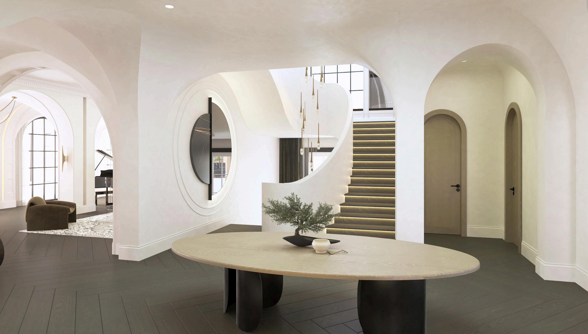 Experience a glimpse inside one of our latest renovations in West Boca’s prestigious St. Andrew’s Country Club. This two-story Mediterranean estate has been reimagined with a refined interior that seamlessly blends Regency-era elegance and Italian contemporary styling, an unexpected harmony of bold detail and soft modernity.