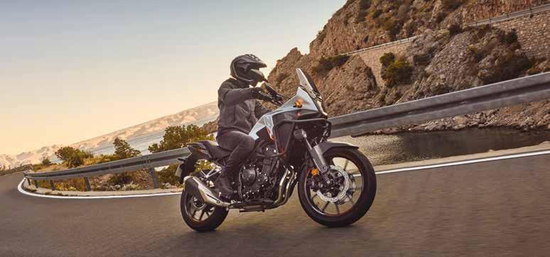 We’ve joined up the riding technology. Through a busy working week – or over a fun weekend trip – you want to stay in touch, navigate or listen to music without losing concentration on the road ahead. And now, with the NX500 and Honda Roadsync, you can. Brand new, simple-touse lefthand switchgear (backlit for use at night) meshes seamlessly with the TFT screen and Honda Roadsync app so you can stay focussed – and fully connected – to your world. The adventure begins.