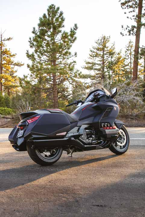 The Gold Wing Tour takes the joy of two-wheeled travel to beyond next level, with extra luggage capacity and supreme luxury, for rider and pillion. It starts out in the same place as the Gold Wing – so has identical 1,833cc opposed, flat six-cylinder engine with 170Nm peak torque, 4 riding modes, electronic suspension damping control, Dual Combined Braking System (D-CBS) and ABS. But, for an extra layer of riding confidence in all riding conditions, the Throttle By Wire (TBW) engine management employs Honda Selectable Torque Control (HSTC) to constantly monitor and maintain rear wheel traction. There’s also the option of a sevenspeed Dual Clutch Transmission (DCT) alongside the six-speed manual transmission. The Gold Wing Tour also adds an airbag option.
