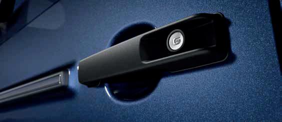 With the MANUFAKTUR Logo Package1, you can feel the legendary letter “G” on the MANUFAKTUR door knobs with embossed logo every time you open the door. In addition, you are welcomed by an exclusive mirror projection of the lettering “G – STRONGER THAN TIME”. This makes even getting into your G-Class a special experience.