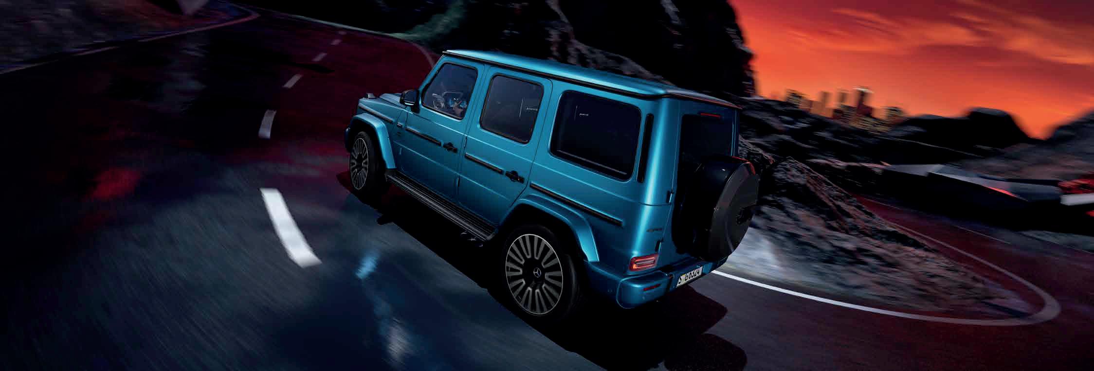The G-ROAR1 acoustically emphasises the special character of your all-new electric G-Class – both inside and out. In addition to interactive driving sounds, the G-ROAR accompanies other processes such as charging. With the G-TURN offroad function, you can turn your G-Class spectacularly almost on the spot. The vehicle even rotates by up to 720° in the desired direction on unpaved or loose surfaces. The function can help you manoeuvre, especially on seemingly hopeless offroad stretches. The G-STEERING offroad function reduces the turning circle of your G-Class if required – on unpaved or loose surfaces and at speeds of up to 25 km/h. The drive torque on each wheel adapts individually to the respective situation. For example, you can master Hairpin bends or other narrow sections without time-consuming manoeuvring.