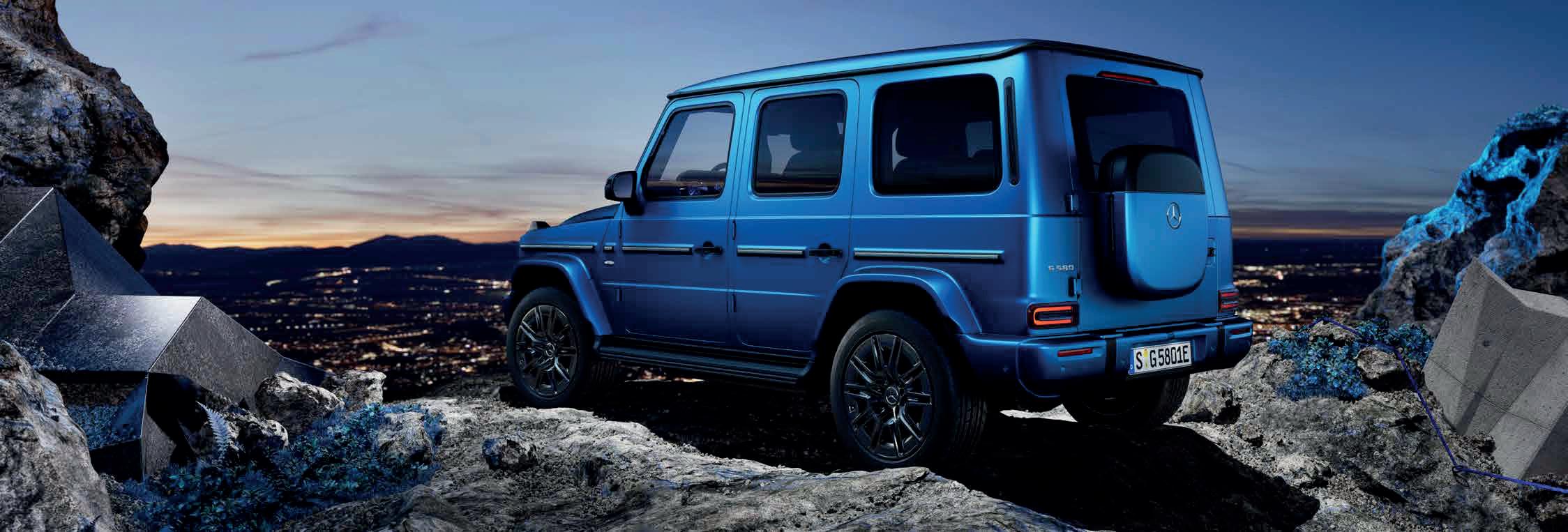 With the EDITION ONE1, you are showing yourself to be a pioneer of a new era: the G-Class is going electric. The unmistakable appearance of the special model is characterised by blue design elements on the exterior, combined with the AMG Line and Night Package. In the interior, the SUPERIOR Line welcomes you with its own colour concept and topstitching in blue.