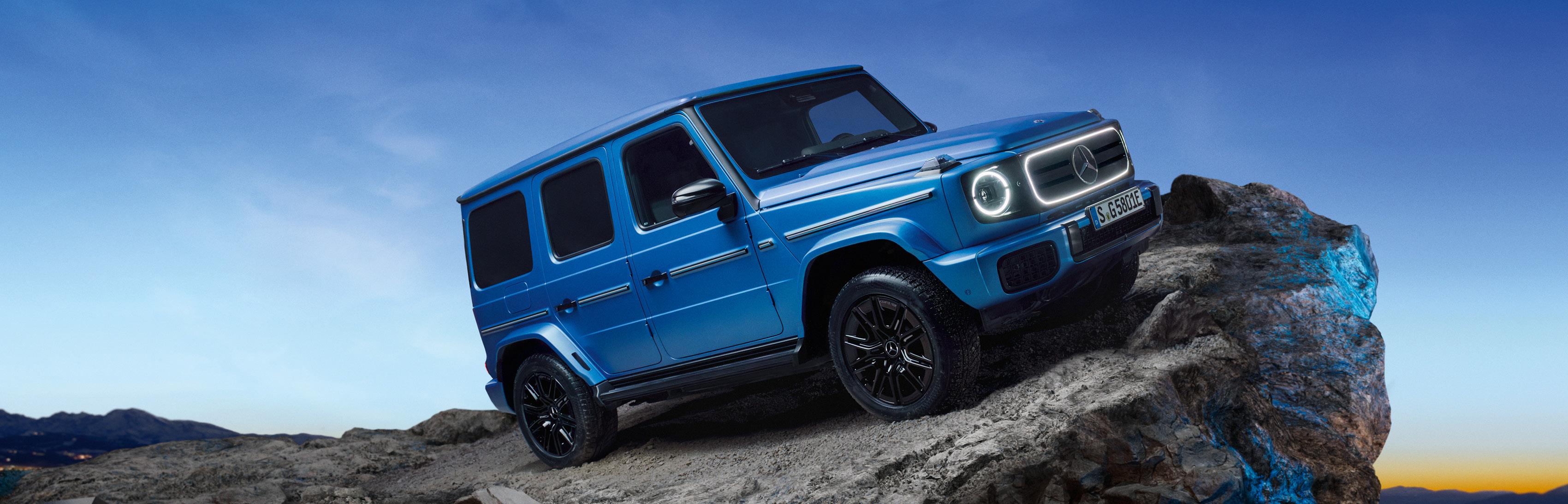810 Burmester Surround hljóðkerfi (760W - 18 hátalarar) 854 MBUX afþreyingarkerfi fyrir aftursæti RR0 Varadekkshlíf með hring úr ryðfríu stáli í stað Design Box (aðeins fyrir G 580 Power)