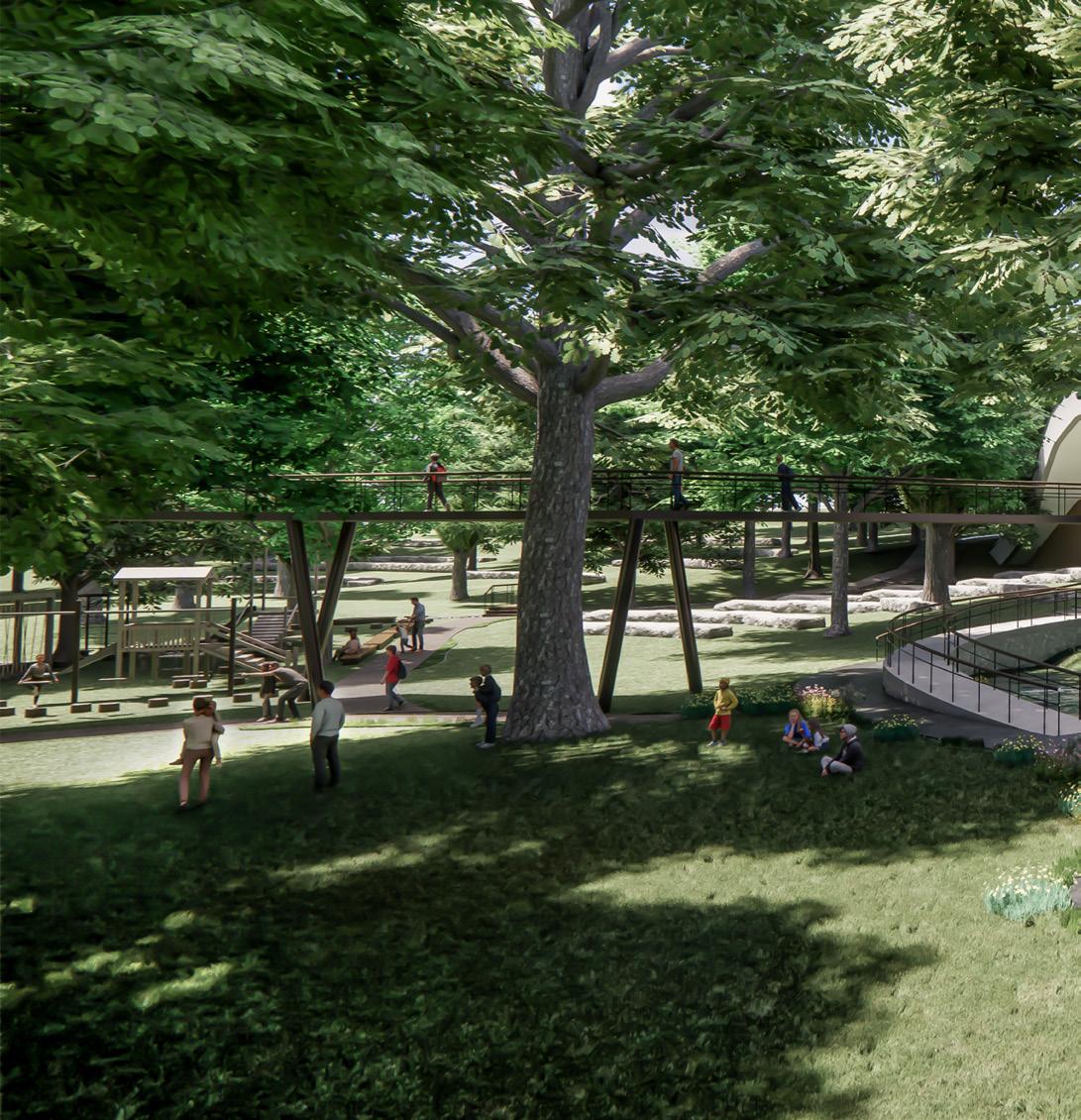 - A multi-use covered platform (stage) for gathering, exercising, and performances: group classes, picnicking, games, birthdays, etc.
