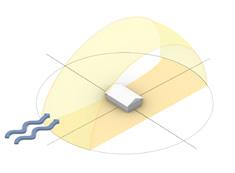 Helical arrangement improves integration with existing trees & topography. The central portion is less visible and can conceal the circulation core.