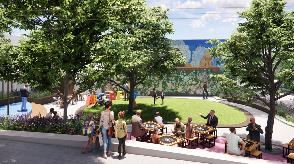 Our team was responsible for transforming a vacant lot in Westmoreland street into a community park serving seniors & children alike. Through several community charrettes it was recognized that the neighborhood’s seniors are less inclined to go outside post the COVID pandemic. Domino playing and street karaoke were recognized as popular activities, and were provided for in the proposed design. Sculptural lettering was proposed as a way to provide educational playspace and increase a sense of community pride & agency.