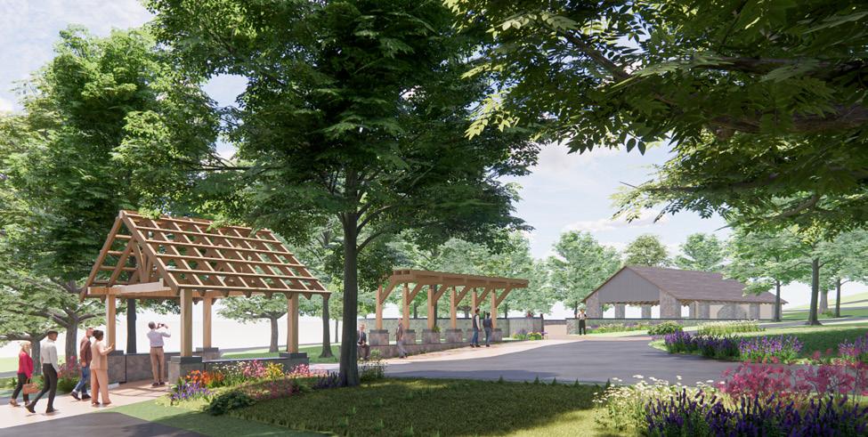 Designated in 1933, Bowman’s Hill Wildflower Preserve in Buck’s County, PA has ever since been a gem of lush forest and vernacular plants and animal species, as well as home to several revolutionary historical sites (among them the Bowman’s Tower and the Captain James Moore Pavilion). It is a popular hiking venue and a profound resource for environmental education. The Bowman Hill Pavilion, an open shelter at the North boundary of the preserve, is operated as a schooling hub and a wedding venue. In this project I have teamed with Baldev Lamba, founding principal of Lamba Associates, to revitalize the modest existing shelter into a fully functional wedding venue, adorned with landscaping interventions that create several surrounding gardens. The proposed design includes a new elevated terrace, walking trails and a new ADAconforming path from the parking lot, dotted with two canopies, to render the site handicap-accessible.