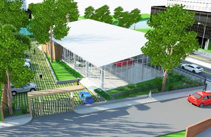 AUDITORIUM TUNNEL CONNECTION BETWEEN CITY ROAD AND PRECINCT GLASS FACADE PERFORATED FACADE DOUBLE GLAZED ROOF