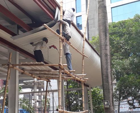 Pre-fabricated corrugated commercial sheet installation over super structure