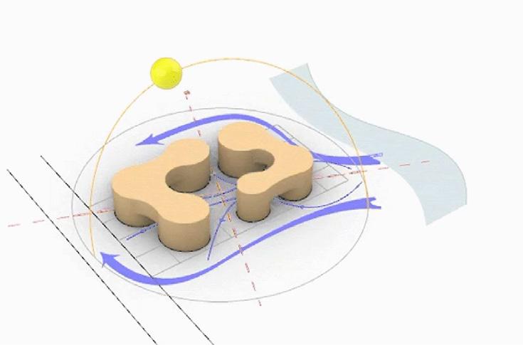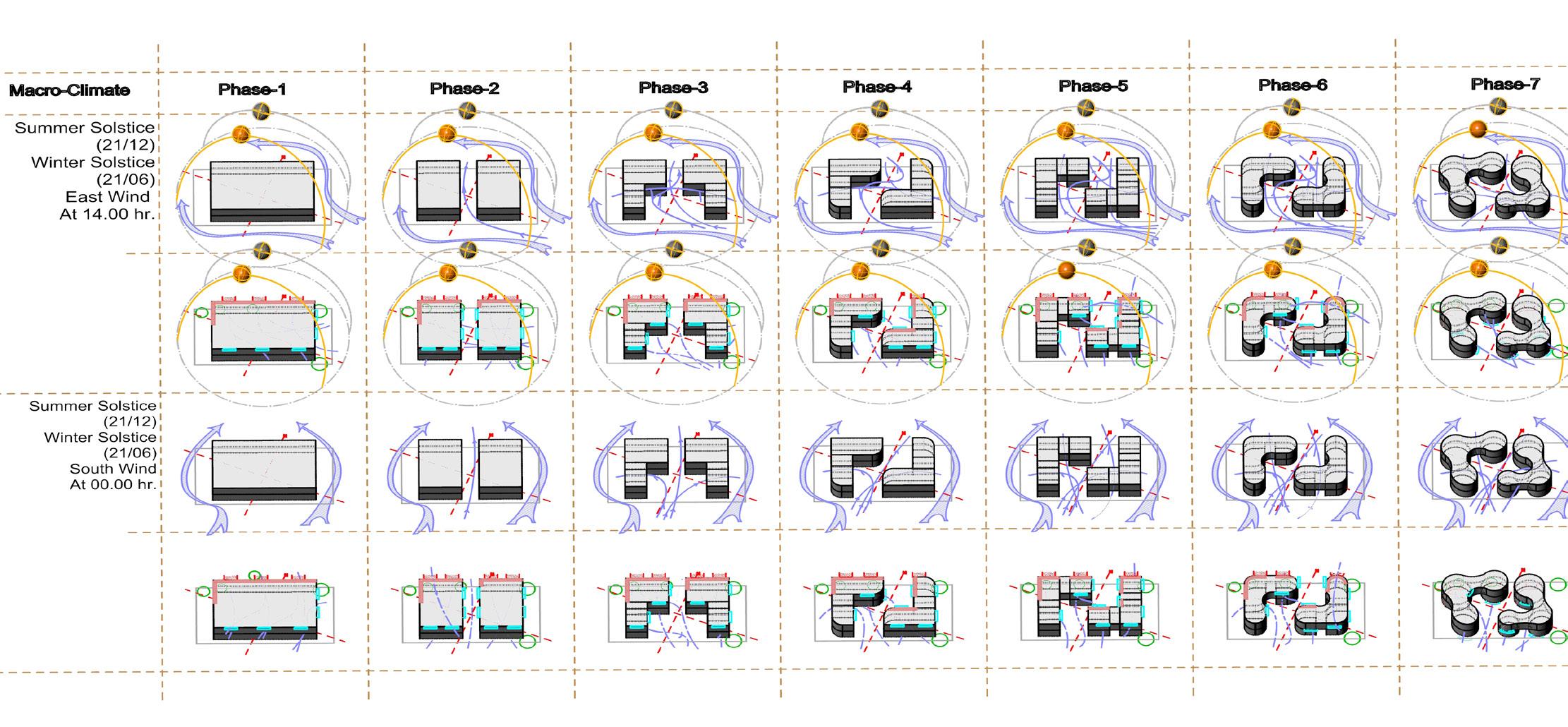 Idea for the morphological pattern developed through the study of local topography. Site context feeds us with lush green spaces and open green carpet in between which provides a geometrical natural grid. Primary reference for design was developed following the grid pattern.