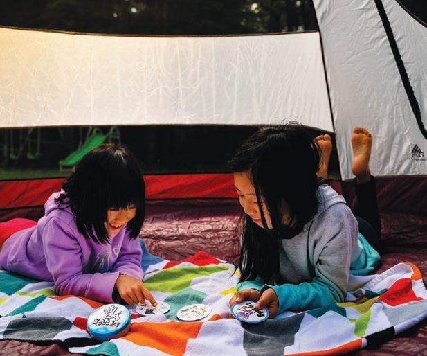 Respectez l’espace et l’intimité des campeurs à proximité. Limitez le niveau de bruit et évitez de les éclairer avec vos lampes de poche. Si vous rencontrez d’autres familles avec enfants qui ont envie de socialiser, brisez la glace avec un jeu amusant comme Aïe aïe burrito !