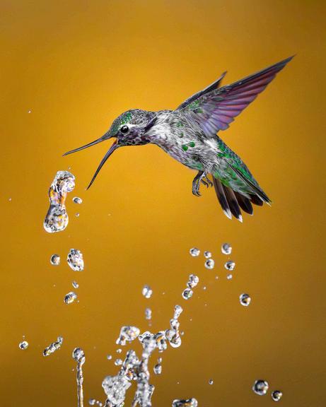 Gilbert, AZ / Anna's hummingbird attempting to quench thirst on a hot summer afternoon in Arizona.