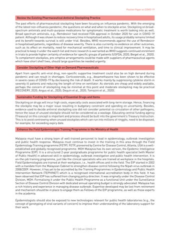 This position paper would not materialise without the support and commitment of many of the experts from ASM Fellows, the Associate Members, the Young Scientist Network, and experts from non-ASM experts. My gratitude goes to all the Head of the Task Forces and their team members for all their dedication and hard work, which have enabled us to come up with this report. It is hoped that this report will give an insight into the considerations on the planning efforts by all relevant authorities in effectively controlling this current COVID-19 or any other future outbreak.