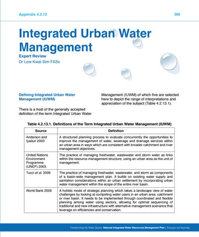 There is a host of the generally accepted definition of the term Integrated Urban Water Table 4.2.13.1. Definitions of the Term Integrated Urban Water Management (IUWM) Source