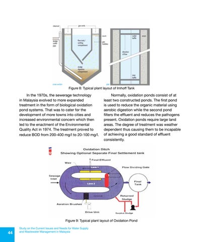 In the 1970s, the sewerage technology in Malaysia evolved to more expanded treatment in the form of biological oxidation pond systems. That was to cater for the development of more towns into cities and increased environmental concern which then led to the enactment of the Environmental Quality Act in 1974. The treatment proved to reduce BOD from 200-400 mg/l to 20-100 mg/l.