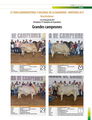 57 FERIA AGROINDUSTRIAL Y NACIONAL DE LA GANADERIA - MONTERÍA 2017 Raza Brahman 12 al 18 de junio de 2017 Participantes 177 ejemplares de 34 ganaderías