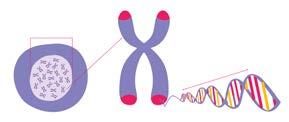 Pav. 3. Ląstelės genetinė medžiaga. Dauguma žmogaus ląstelių turi specialų kodą, vadinamą „gyvenimo įspaudu“. Jame užkoduota informacija, iš ko sudarytas mūsų kūnas ir kaip jis veikia. Šis kodas randamas chromosomose. Tai ilgos deoksiribonukleininės rūgšties (DNR) grandinės, tampriai apsivijusios apie baltymų molekules. Genai – nedidelės DNR atkarpos. Kiekvienas žmogus turi nuo 20000 iki 25000 genų. Juose sutelkta informacija apie baltymų gamybą ląstelėje.
