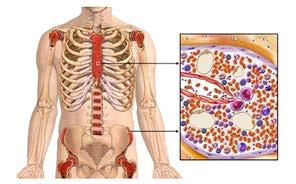 Daugiausia kraujo ląstelių formuojasi kaulų čiulpuose. Tai porėtas, į kempinę panašus audinys, esantis kauluose (žr. 1 pav.).