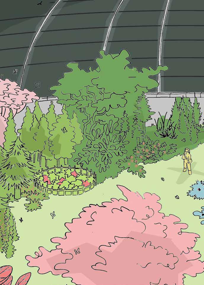 Precisamente tras el vasto recinto comenzaba “El Bosque”. Pese a lo que daba a entender su nombre, El Bosque no era sino una plantación de miles de hectáreas de árbol vitae, una especie vegetal sintética creada décadas atrás para paliar la deforestación y la polución del aire. Lejos de haber solucionado el problema, la creación de esta especie fomentó la degradación ambiental. A fin de cuentas, ¿qué sentido tiene preservar la vegetación cuando puedes cubrir la superficie de una especie barata capaz de crecer en las condiciones más adversas? Aquellos de la generación de Oliver tenían el dudoso honor de poder decir que jamás habían visto otro tipo de planta.