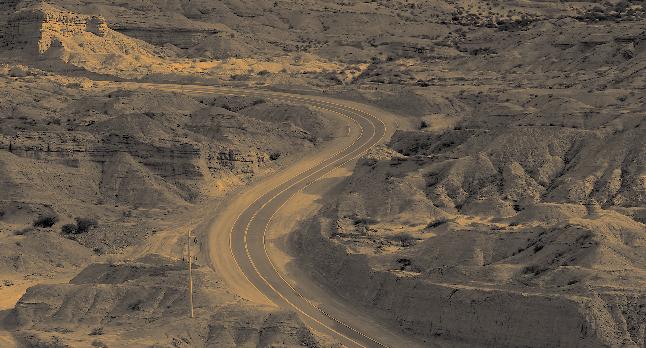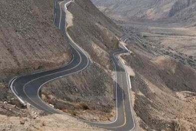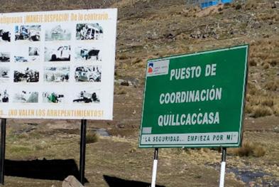 La carretera en este caso se desliza por las colinas de altura hasta alcanzar nuevamente las zonas montañosas de altas cumbres de la Cordillera. Véase el cartel de donde se hace una advertencia sobre las características del camino y las acciones de seguridad que deben contemplar los conductores.