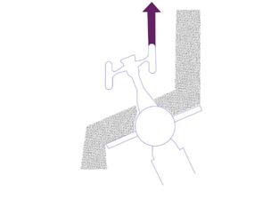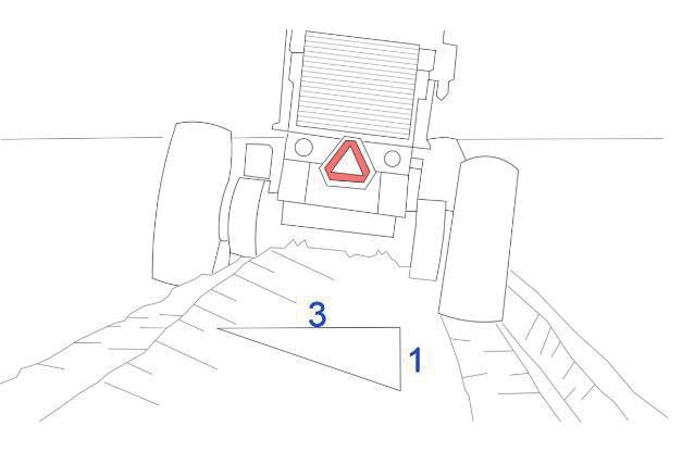 Este sería el modo correcto, en la cual las ruedas delanteras tiran del talón (extremo trasero) de la vertedera; las ruedas traseras empujan la parte más avanzada de la vertedera (puntera). De esta manera se pueden mover los cordones más pesados y ser depositados lateralmente a una mayor distancia de la máquina.