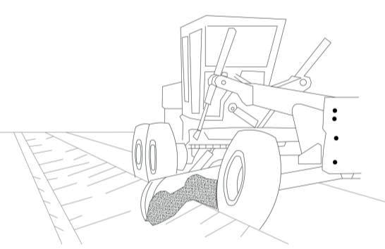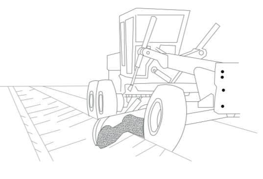 La cuchilla se colocará sobre la superficie del camino a una altura igual al espesor requerido para realizar la distribución del suelo, la que dependerá de cada tipo, humedad, habilidad del operario y potencia de la motoniveladora.