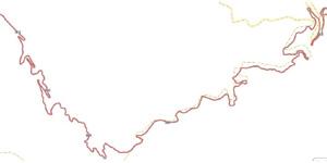 En la Figura N° 31 se observa un dibujo de la traza con las sinuosidades de la carretera que desciende a la geografía donde corre encañonado el mencionado curso de agua. Nótese las dificultades que implica para el desplazamiento de los vehículos un camino con estas características. •