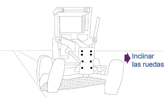 Esta operación se puede repetir, pero en lugar de tener posicionada la rueda trasera en el mismo plano, se la puede desplazar lateralmente de manera de que no coincida con las delanteras. De esta manera, la motoniveladora realizará una mejor prestación tanto del equipo en sí como del manejo del suelo, decidiendo de esta manera una adecuada velocidad y ángulo de cuchilla. Por otro lado, mediante este desplazamiento lateral de la rueda trasera se logra aumentar el volumen de suelo que gira a lo largo de la vertedera en forma de “tirabuzón” (helicoidal).