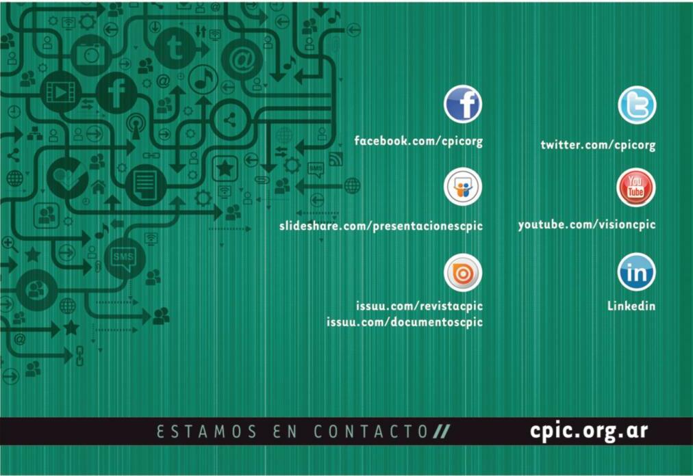 Continuaremos divisando nuevos horizontes inclusivos y de participación para la ingeniería civil argentina Desde el CPIC, trabajamos ofreciendo cursos, organizando eventos de interés, editando libros con material útil para la labor profesional cotidiana, acrecentando el Acervo profesional, la firma digital, y participando de cuanto foro nos permite hacer oir nuestra voz para el bien de la profesión y el crecimiento de nuestra industria de la construcción.