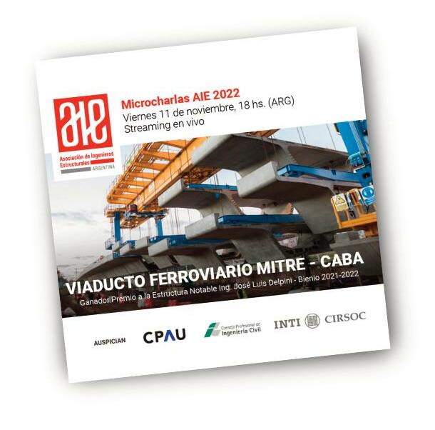 El Ing Martín Polimeni, ganador del Premio a la Estructura Notable Ing. José Luis Delpini- Bienio 2021-2022, protagonizó la Microcharla “Viaducto ferroviario Mitre, CABA”, el pasado 11 de noviembre a las 18 horas En la primera parte de la charla, se abordaron los aspectos y criterios técnicos concernientes a la ejecución de viaductos ferroviarios y viales, desde la elección de la luz óptima, el diseño de la sección transversal, tipos de pilas de apoyo, etc. Seguidamente, se describieron el diseño estructural y la ejecución de la obra del Viaducto Ferroviario Mitre, su posteado externo y mixto, la ejecución de dovelas y pilas de fundación Entre los objetivos perseguidos por el encuentro se destacan: Introducir conceptos sobre diseño, construcción, transporte y sistemas de montaje de viaductos ferroviarios y viales de hormi-