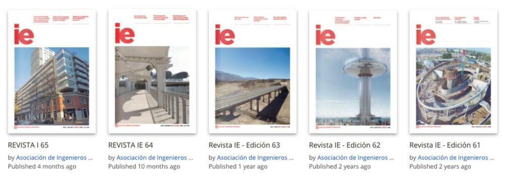 Te invitamos a leer las ediciones de Revista IE, publicación de la Asociación de Ingenieros Estructurales para la divulgación e información sobre temáticas científicas y técnicas, en el siguiente link https://issuu.com/asociaciondeingenierosestructurales