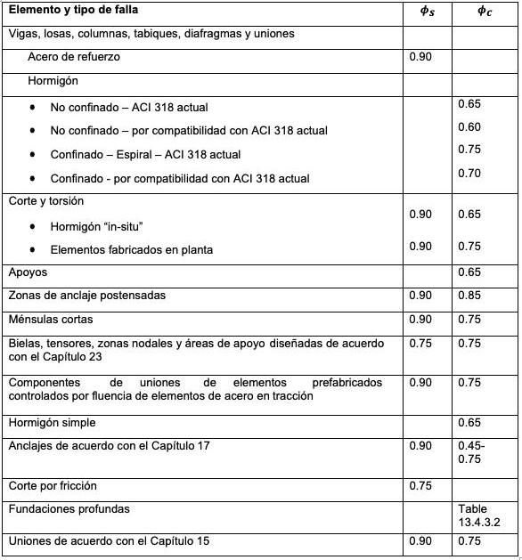 FAcToreS de SeGuridAd por mATeriAL eN eL Aci 318