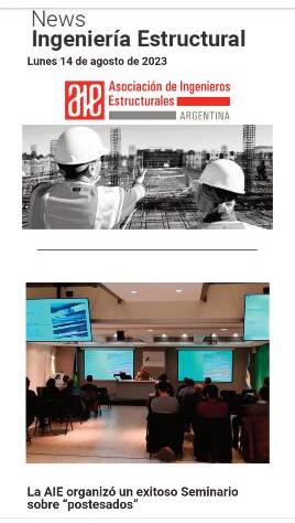 Desde el lunes 10 de julio de 2023, los asociados a la AIE reciben en sus correos electrónicos un nuevo y exclusivo News de Noticias De esta manera, el News Ingeniería Estructural, llega puntualmente cada lunes a partir de las 10 horas con una cantidad de informaciones sumamente útiles para los profesionales de la ingeniería estructural y las disciplinas afines.