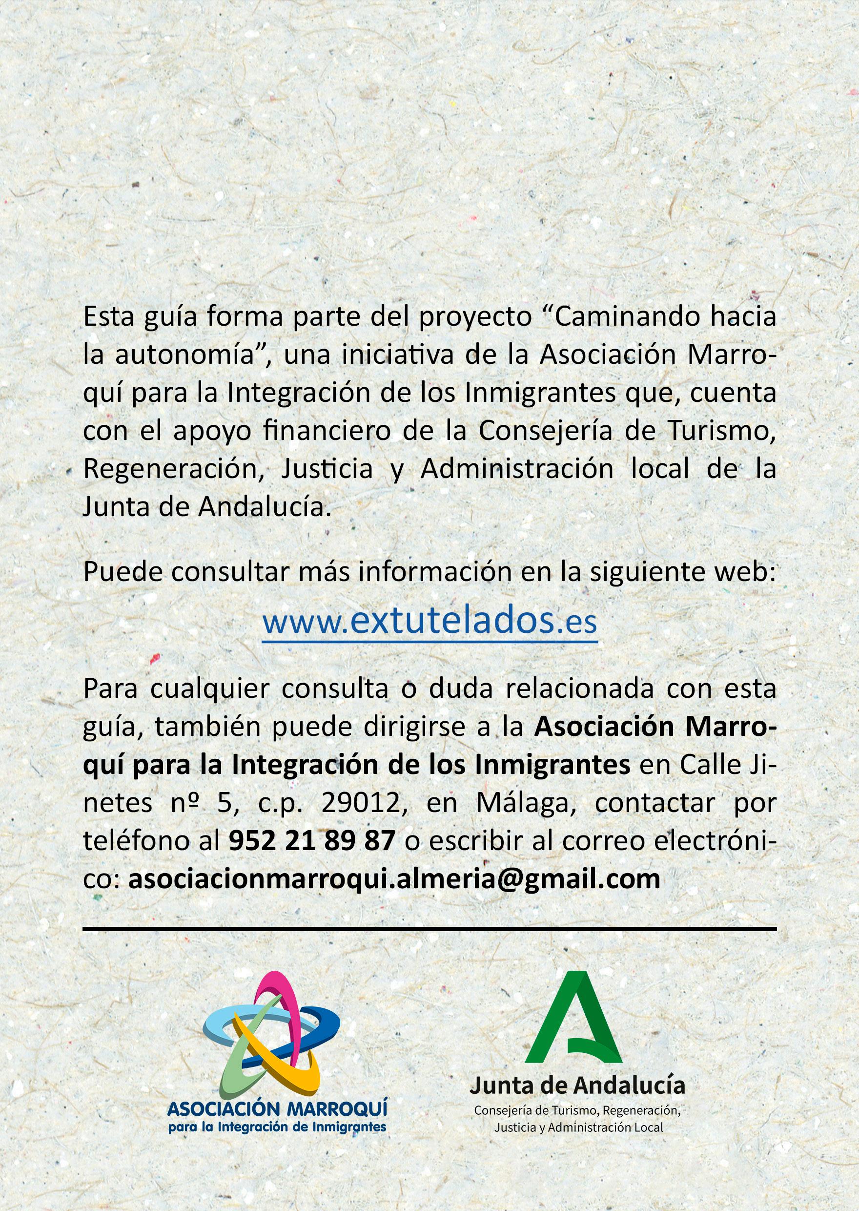 Esta guía forma parte del proyecto “Caminando hacia la autonomía”, una iniciativa de la Asociación Marroquí para la Integración de los Inmigrantes que, cuenta con el apoyo financiero de la Consejería de Turismo, Regeneración, Justicia y Administración local de la Junta de Andalucía.