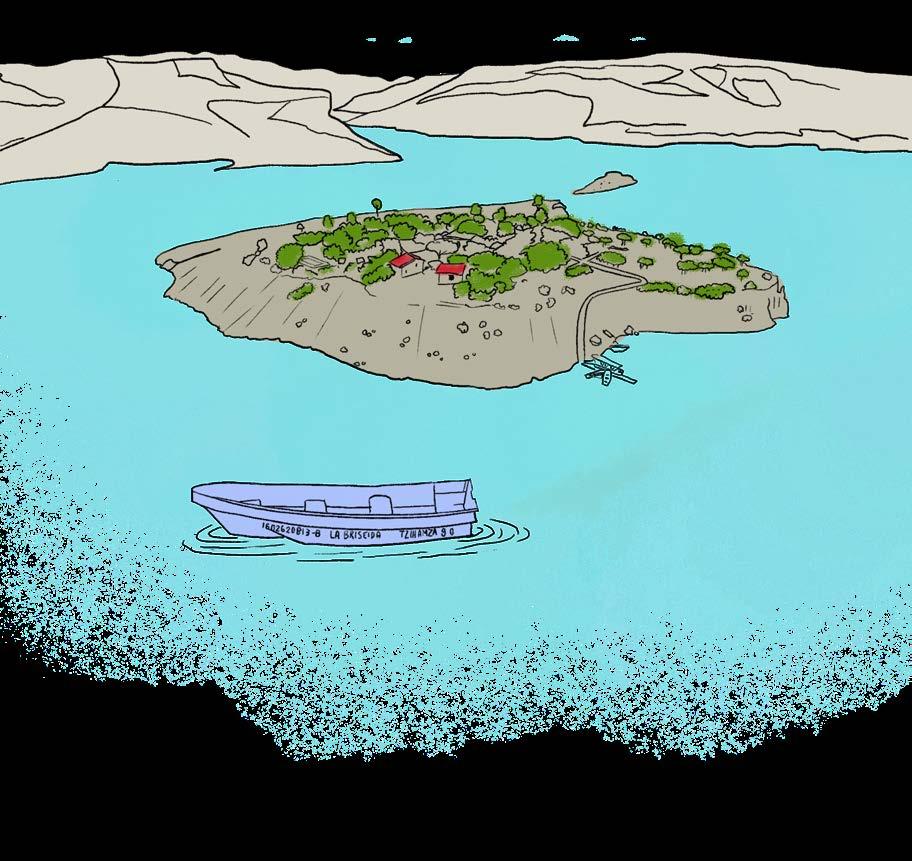 Mi familia y yo a veces vamos a la presa de Zimapán. Clavada en medio del semidesierto, dicen que en su fondo había un valle fértil que en los ochenta inundaron y ahora está cubierto por agua tan honda que se ve negra. A mi papá y a mis hermanos les gusta salir a pescar. A mí me gusta observar, porque el agua suele estar fría y casi nunca me meto. Me gusta subirme a una lancha y flotar. No hay marea ni arena, no hay agitación. Aquí, siempre aquí. La presa es una aventura artificial, diminuta fuga hecha posible porque aquí no hay playa.
