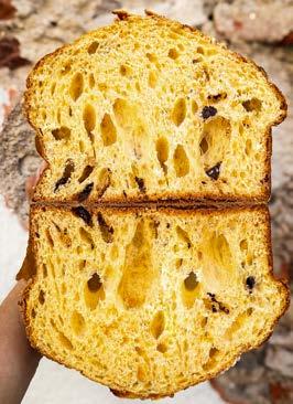 y en su página web panetones elaborados con biga (un prefermento de origen italiano), al que añaden confitura de naranja y cidra, uva pasa, mantequilla y vainilla —ideales para acompañar con vino y, en especial, con vermut. También, aunque se trate de una panadería francesa, Saint Honoré cuenta este año con dos sabores diferentes: el clásico, con cítricos confitados, vainilla y uva pasa rubia; y el de chocoavellanas, con chocolate amargo y semiamargo, en tamaño individual, mediano o grande. De miga húmeda —con una textura semejante al algodón—, este pan es perfecto para ir comiéndolo y disfrutando durante las fechas decembrinas que invitan a permanecer en el calor del hogar y rodeado de seres queridos.