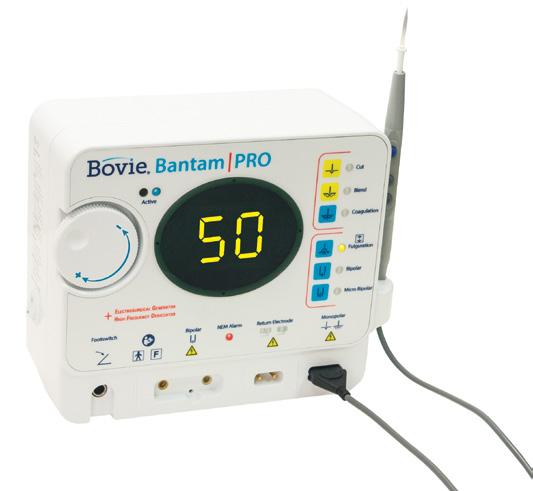 The Bovie® Bantam | PRO is a High Frequency Desiccator with cutting ability. One half of the unit is a high frequency desiccator, an upgrade to our very popular Bovie® A942. The other half is a Bovie® generator, giving you 50 watts of cutting power and coag capabilities – plenty of power for most cutting procedures performed in the doctor’s office.