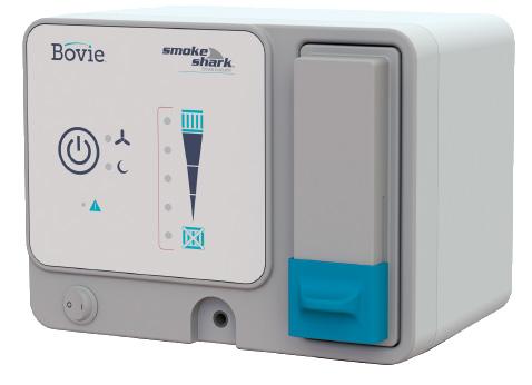 The Bovie® Smoke Shark ® III incorporates powerful and effective smoke evacuation to reduce the biological, physical, and chemical hazards present in the surgical smoke generated from the use of any energy devices including electrosurgical, laser, and ultrasonic products. It is designed as a smaller device to uniquely address the limited space and shorter procedures performed in the physician’s office.