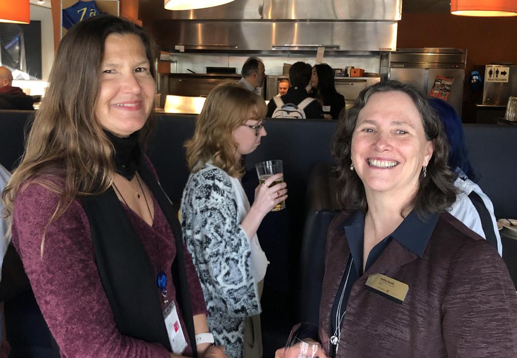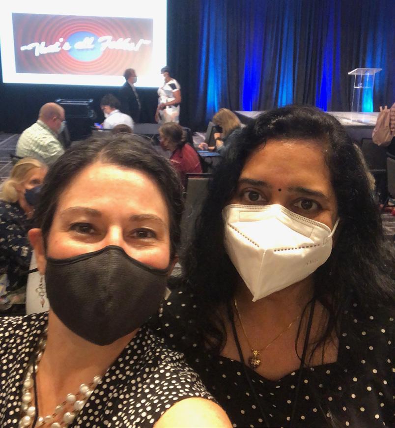 Above, the annual Graduate Career Consortium conference brought together universities from all over the world to discuss career and professional development, this year from San Francisco. Left, Ashley Brady, PhD, and Jan Varadarajan, PhD, snag a selfie between sessions at GCC.