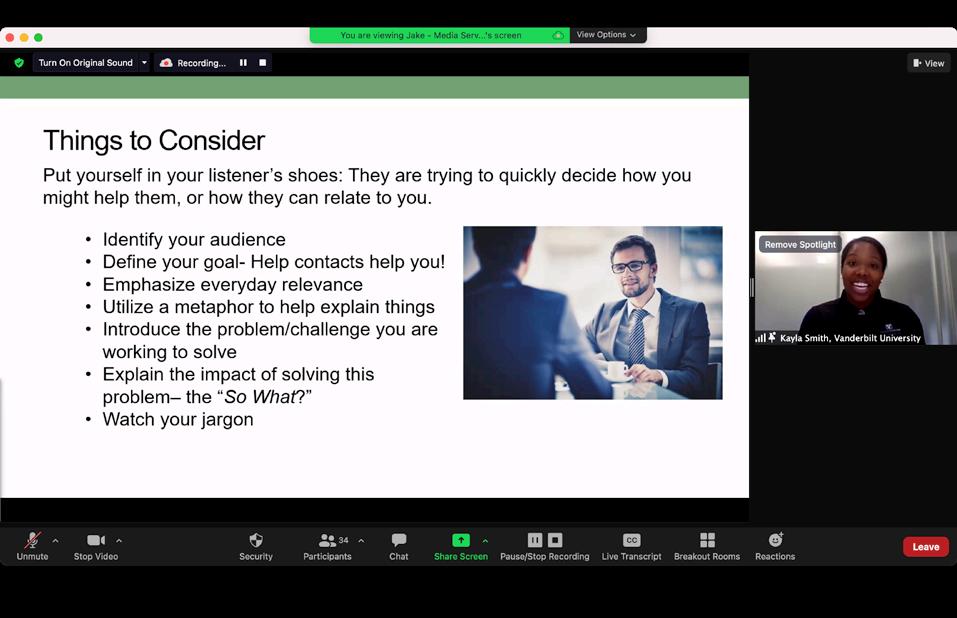 In addition to engaging current Vanderbilt University and Vanderbilt University Medical Center students and postdocs, the event, especially with its virtual platform this year, was a compelling way to include alumni in ASPIRE programming. While the event boasts numerous benefits, students found that one of its key strengths was the opportunity to build connections with alumni in industry. The cornerstone of Mock Interview Day is its ability to bring real-world experience to trainees, typifying the career and professional development goals of the ASPIRE program.