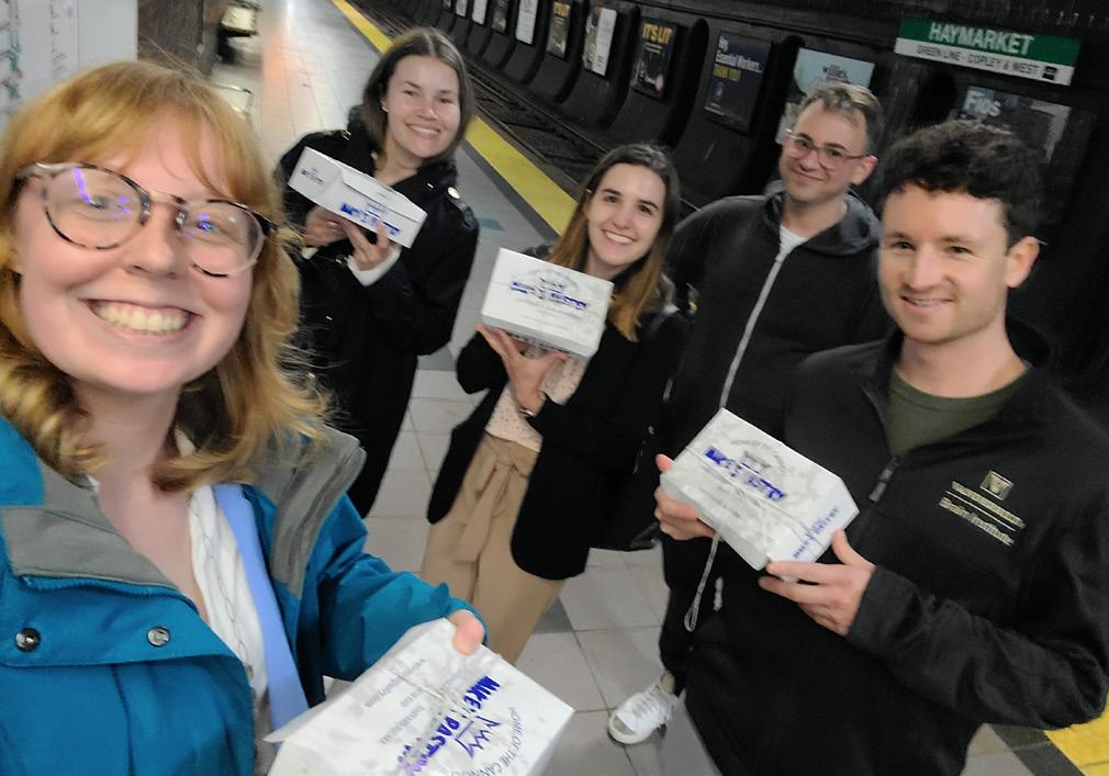 Above, authentic Boston cannoli was obtained after a long day of site visits. Below, trainees embark on their tour of Kendall Square, with one stop at the Broad Institute.