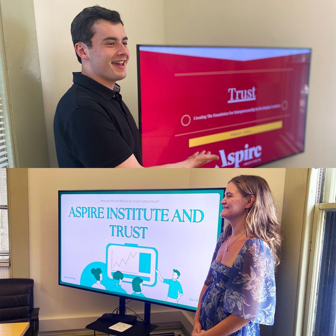 September BostonUniversitystudentsHailee Helfrick’25andMasonYates ’25,bothfirst-generationcollege students,sharedinsightsfrom theirAspireInstitutesummer internship.Theyreflectedontheir experiencesthroughthelensof “Trust:CreatingtheFoundation forEntrepreneurshipin DevelopingCountries”byAspire co-founderandHBSprofessor TarunKhanna,connectingits lessonstotheirworkandfuture goals.