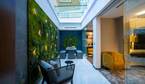 On the ground floor, you’ll find the cosy and contemporary drawing room where you can both relax and recharge. Comfortable armchairs, enveloping sofas and a carefully curated art collection combine to lend a club like atmosphere. The Library is tucked away off the drawing room and is perfect for curling up with a book from their interesting collection.