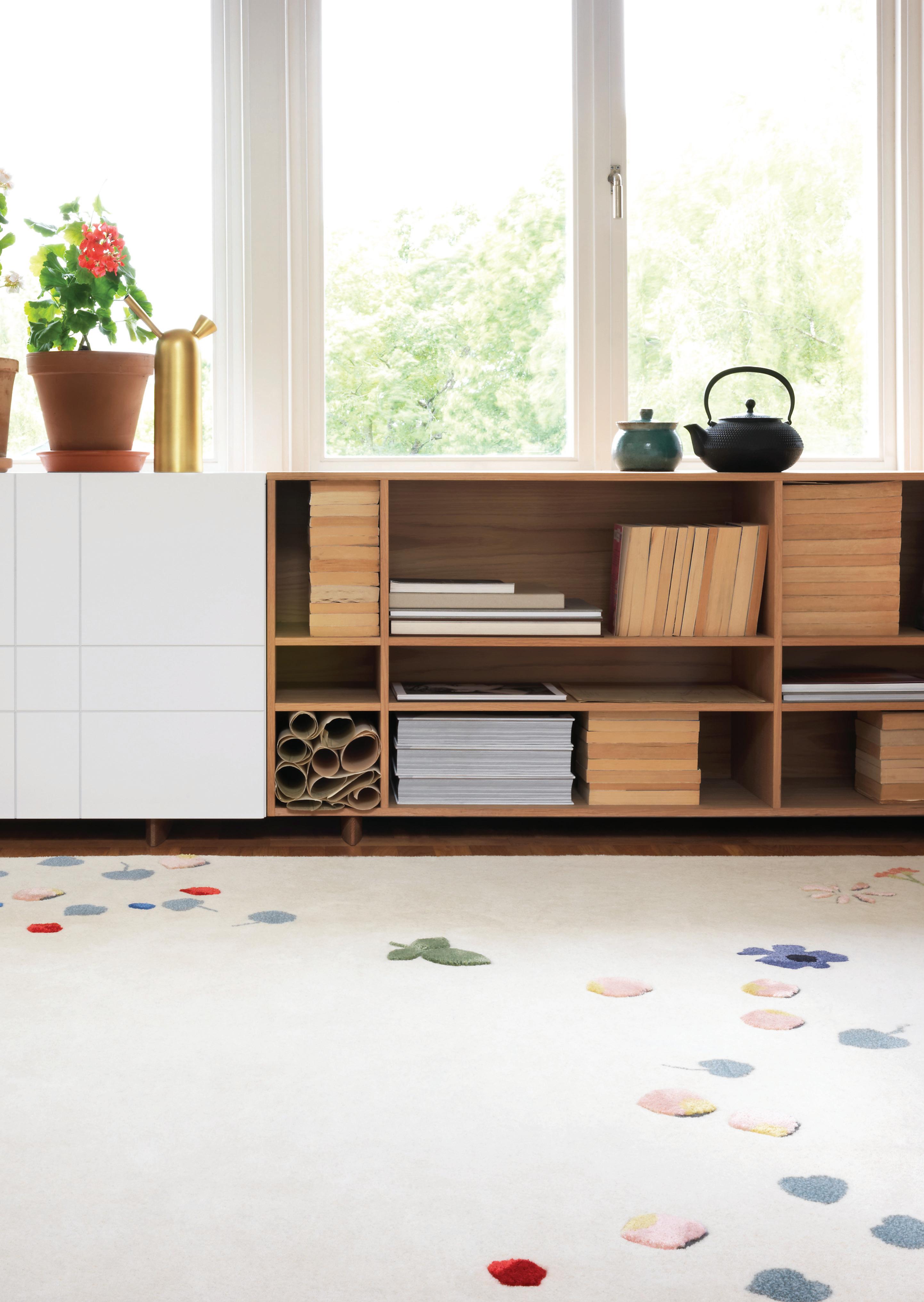 The Fleur rug was designed to give the classic flower pattern a modern take. Inspired by the floors of a flower shop, where a bunch of different flowers were thrown from a high ladder onto the floor, creating a realistic, one of a kind, beautiful pattern.