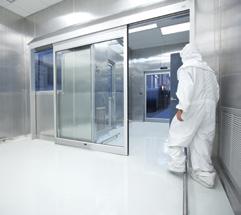 Automatic doors provide a useful function in clean room environments, increasing productivity and improving safety of transporting delicate and expensive equipment. The ASSA ABLOY SL500 Clean Room sliding door package separates work process areas and provides convenience, reliability and protection for new construction or existing environments.