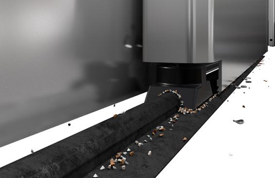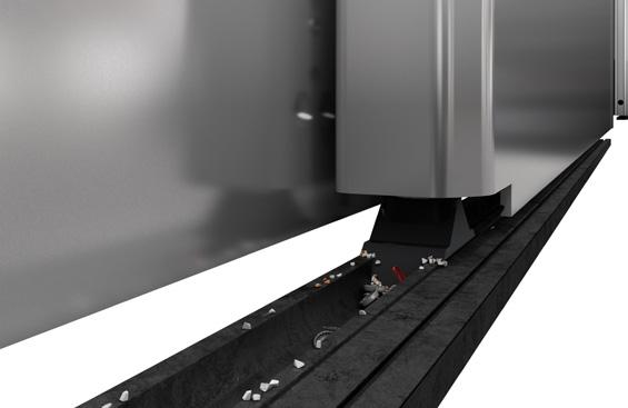 A self-cleaning pin guide is available as optional equipment on SL500 Full Breakout, overhead concealed configurations. This patented technology features guide blocks which automatically clear debris from the track, which reduces friction and resistance during operation.