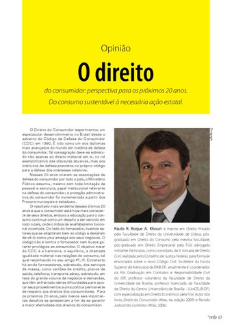 Paulo R. Roque A. Khouri é mestre em Direito Privado pela Faculdade de Direito da Universidade de Lisboa, pósgraduado em Direito do Consumo pela mesma Faculdade, pós-graduado em Direito Empresarial pela FGV, advogado militante. Participou, como convidado, da III Jornada de Direito Civil, realizada pelo Conselho de Justiça Federal, para formular enunciados sobre o novo Código Civil. Ex-diretor da Escola Superior de Advocacia da OAB-DF, atualmente é coordenador da Pós Graduação em Contratos e Responsabilidade Civil do IDP, professor voluntário da Faculdade de Direito da Universidade de Brasília, professor licenciado da Faculdade de Direito do Centro Universitário de Brasília - (UniCEUB-DF), com especialização em Direito Econômico pela FGV. Autor dos livros Direito do Consumidor (Atlas, 4a. edição 2009) e Revisão Judicial dos Contratos (Atlas, 2006).