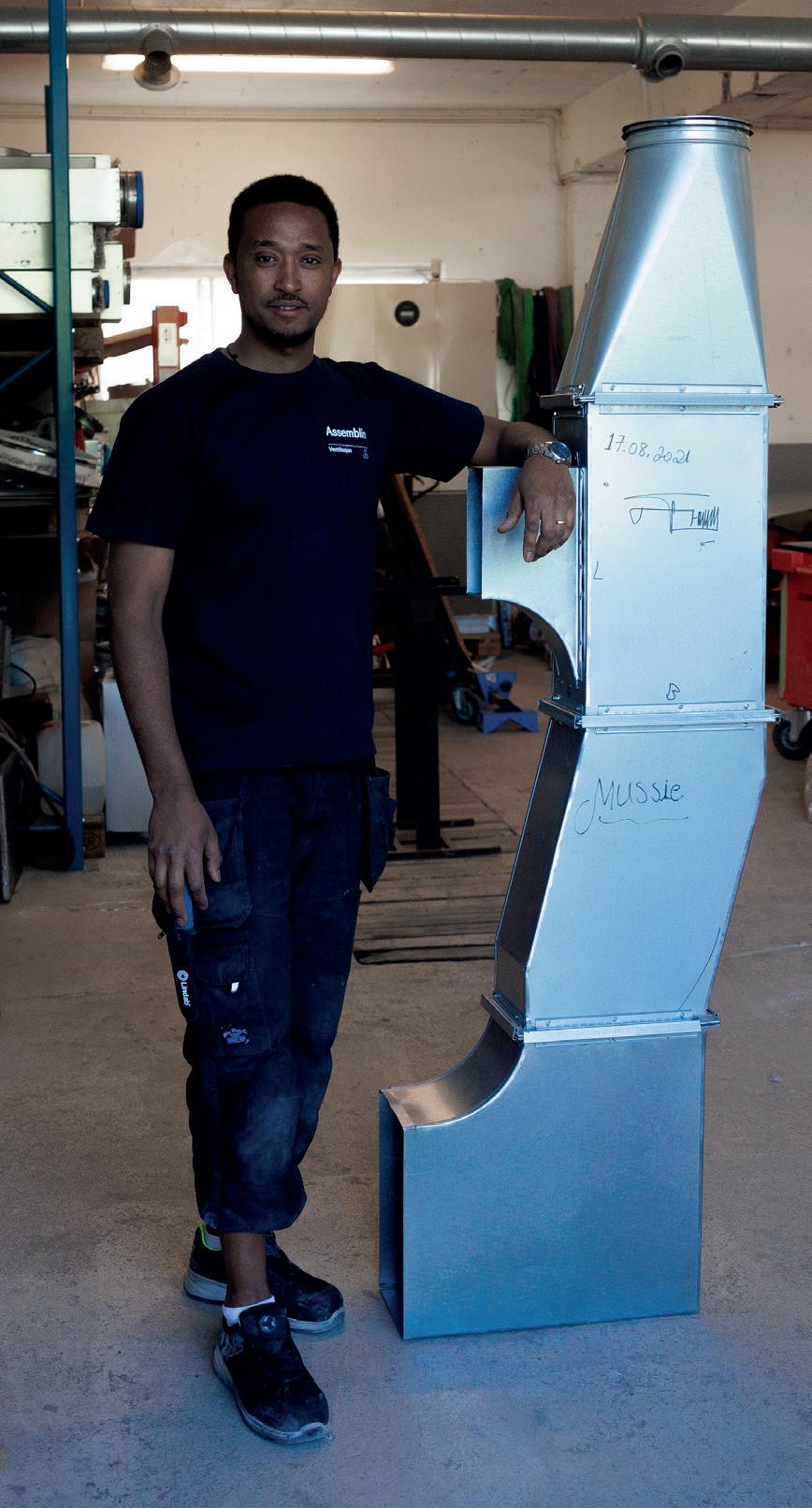 Mussie Gebrehiwet tok tidligere i år svenneprøve som blikkenslager. Han og Magne-Vegar Gulbrandsen er dermed de første med fagbrev ved avdelingen i Mjøndalen.